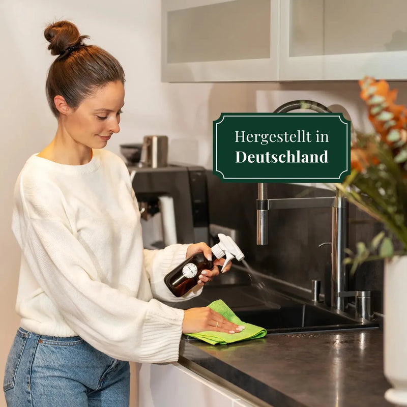 funktioniert auf allen Oberflächen: Küche, Bad, Böden, Glas. Erhältlich in verschiedenen